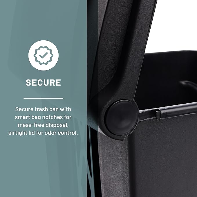 - No-Slip Bag Security - Features notches in the back of the can to securely attach plastic bags and prevent that annoying slip effect. Keeps the inside of your trash can cleaner, longer.