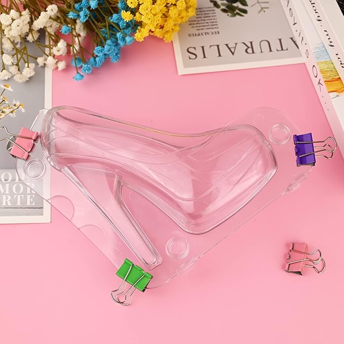 Sakolla High Heel Shoe Chocolate Molds, 3D Shoe Candy Molds Large Thick Soled Stiletto Molds with 4 Clips Cake Decoration for Wedding Birthday Party Baking Pastry Tool