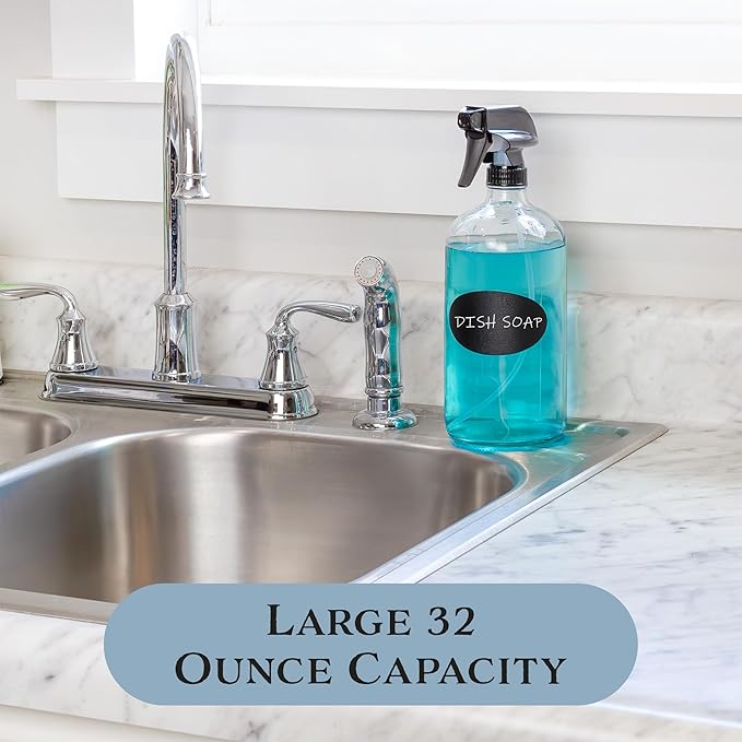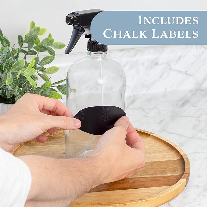 - VALUE 2-PACK: You get two quart size clear glass bottles, 2 trigger sprayers, and 2 chalk labels for labeling.