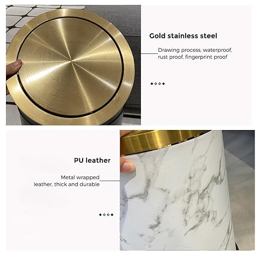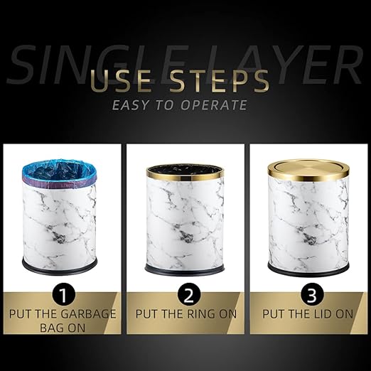 4gallon,Marble Trash Can with Lid,Medium Bedroom Garbage Can,Flip Top Trash Can for Bathroom,Bedroom,Kitchen,Living Room(Marble)