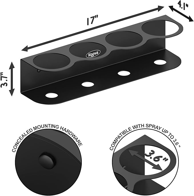 Koova 4 All-Purpose Spray Bottle Holder | Easy Install Wall Mount Hardware Included | Heavy-Duty Powder Coated Steel Storage Rack for Garage And Home | Craft Workspace Paint Bottle Organizer USA Made