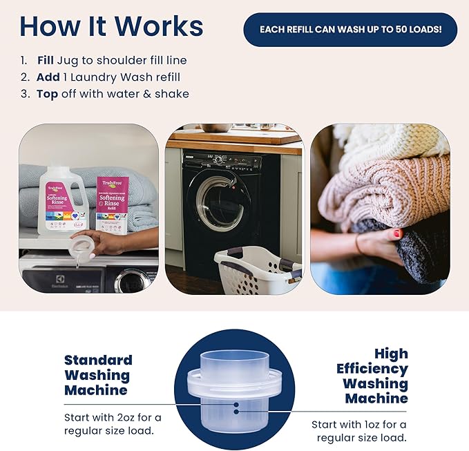 - SUSTAINABLE REFILL SYSTEM: Comes with a convenient 50oz refillable bottle featuring a measuring cap for easy use and accurate dosing.