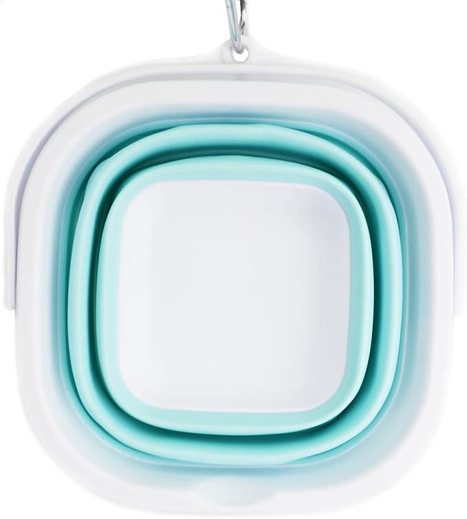 SAMMART 2.6L (0.68 Gallon) Super Mini Sqare Collapsible Plastic Bucket - Foldable Square Tub - Portable Fishing Water Pail - Space Saving Outdoor Waterpot (1, White/Lake Green)