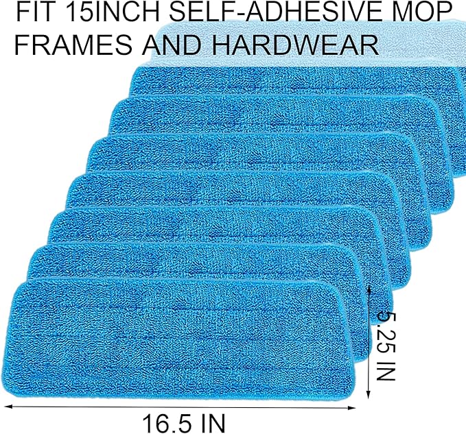 - VALUE REPLACEMENT MOP HEADS - You will get 8 pack professional microfiber spray mop replacement heads in the size of 16 x5.25 inch, fits 15 inch self-adhesive mop frames and hardware. perfect for home and commercial usage to meet your various needs