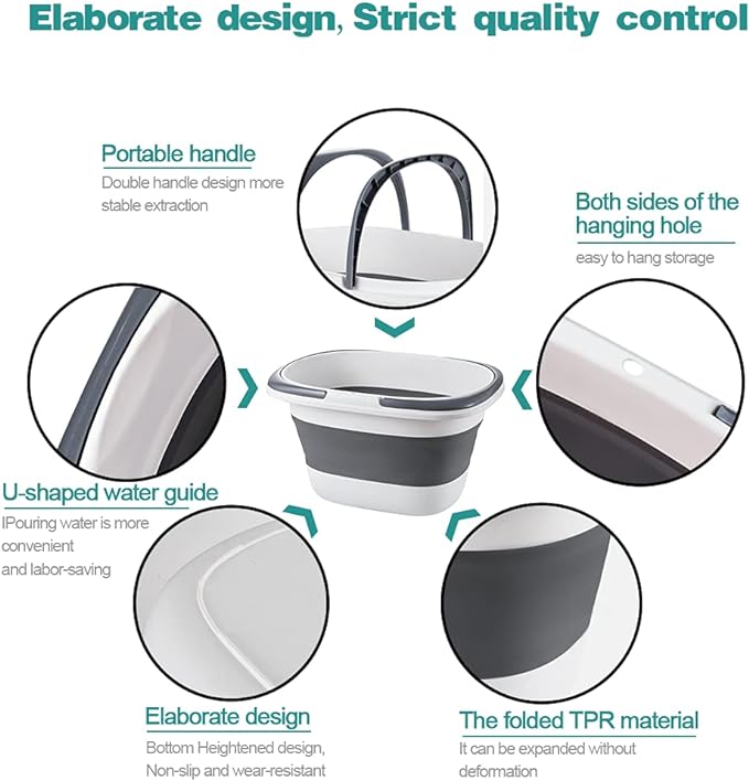 - 【Durable Material(BPA FREE)】The collapsible bucket comprises flexible thermoplastic rubber (TPR) + premium PP material and is dishwasher safe. Which is not easily deformed and durable
