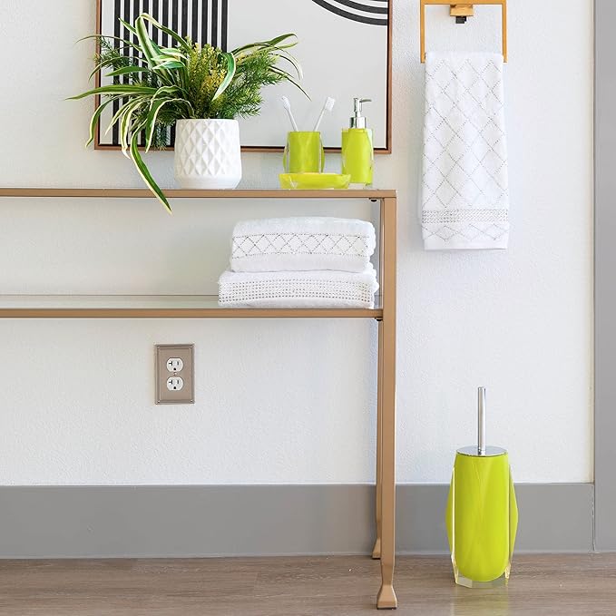 - TOILET BRUSH SET: Includes 1 Brush and 1 Storage Holder. Measures 15.5 inches x 4 inches. Available in Glitter, Bronze, Orange, and Yellow.