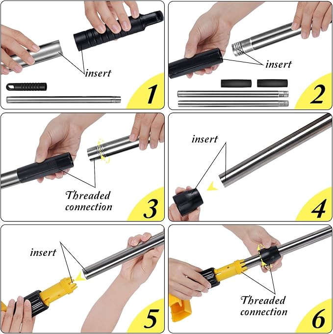 - Extendable Handle with Jaw Clamp:Our commercial mop has an expandable handle, which is made of high-quality stainless steel, strong and reliable, not easy to break, and can withstand all types of cleaning. The three-section rod design allows you to adjust it from 104 cm to 137 cm according to your cleaning needs. The jaw clamp can be controled the opening and closing by rotating the knob above the jaw clamp, which makes the removal and replacement of the mop head easy and efficient.