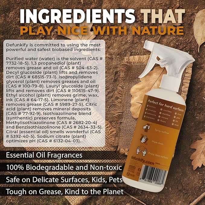 - ๐๐ณ๐ณ๐ผ๐ฟ๐๐น๐ฒ๐๐๐น๐ ๐ฃ๐๐ฟ๐ฒ ๐๐น๐น ๐ฃ๐๐ฟ๐ฝ๐ผ๐๐ฒ ๐๐น๐ฒ๐ฎ๐ป๐ฒ๐ฟ: Using only powerful biobased non-toxic ingredients, Defunkify's pure Kitchen, Bathroom & Floor Cleaner is free of synthetic fragrances, bleach, phthalates, chlorine, brighteners, & more. Defunkify's 'ProvenSafe' degreasing formula is ๐ถ๐ฑ๐ฒ๐ฎ๐น ๐ณ๐ผ๐ฟ ๐๐ต๐ผ๐๐ฒ ๐/ ๐๐ฒ๐ป๐๐ถ๐๐ถ๐๐ฒ ๐๐ธ๐ถ๐ป, ๐ธ๐ถ๐ฑ๐, ๐ฝ๐ฒ๐๐ & ๐ฝ๐ผ๐ฟ๐ผ๐๐ ๐๐๐ฟ๐ณ๐ฎ๐ฐ๐ฒ๐, ๐น๐ถ๐ธ๐ฒ ๐๐๐ผ๐ป๐ฒ & ๐บ๐ฎ๐ฟ๐ฏ๐น๐ฒ. Safe as a hard surface cleaner of the home.