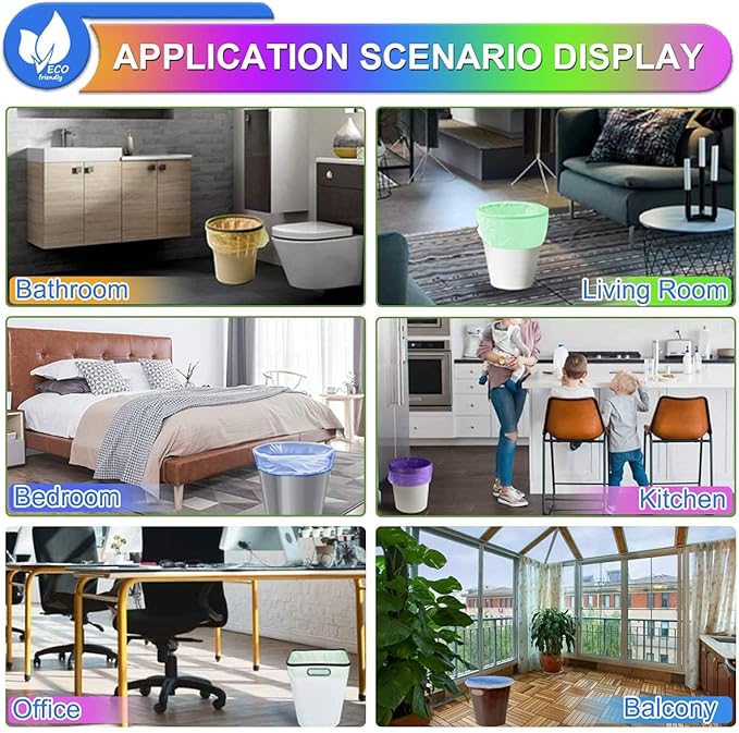 - Multi-Function Trash Bags:Ideal for use as a bathroom trash bags, food waste collection bag, bedroom, , office, baby diaper bucket, fast pet picker and other organic waste collection bags.