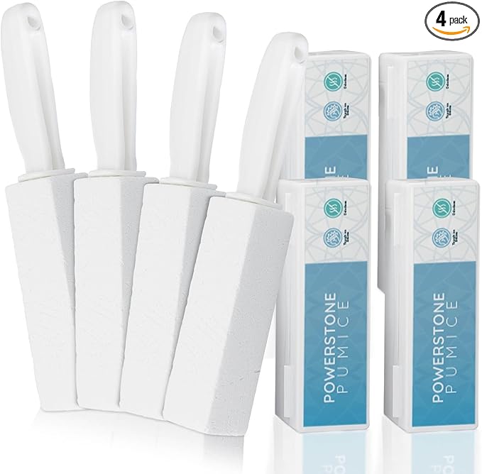 Powerstone Pumice Stone Toilet Bowl Cleaner with Handle (4-pack) - A Solution for Hard Water Stains on Toilets, Grills, Tiles, Grout & Pools