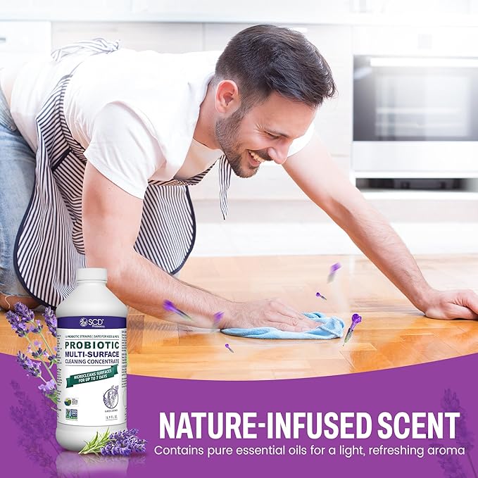 SCD Probiotics Probiotic Multi-Surface Cleaning Concentrate w/Lavender Essential Oil, Microcleans Surfaces for Up to 7 Days, Plant-Based and Multi-Surface 17 Fl Oz (3 Pack)