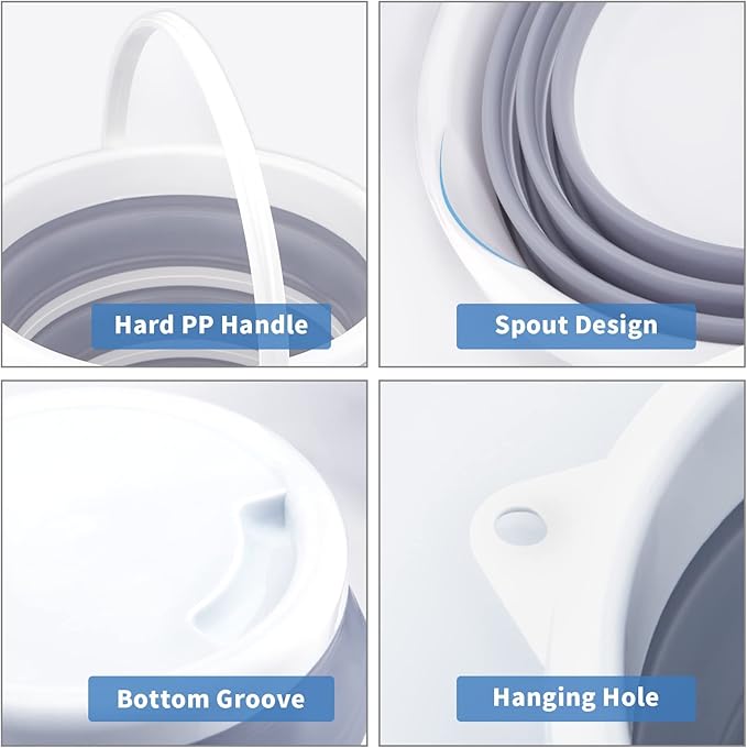- Collapsible bucket with handle:Fold-down carrying handle makes it easy to move when filled, it features a groove for smooth pouring and is collapsible for easy storage and transport