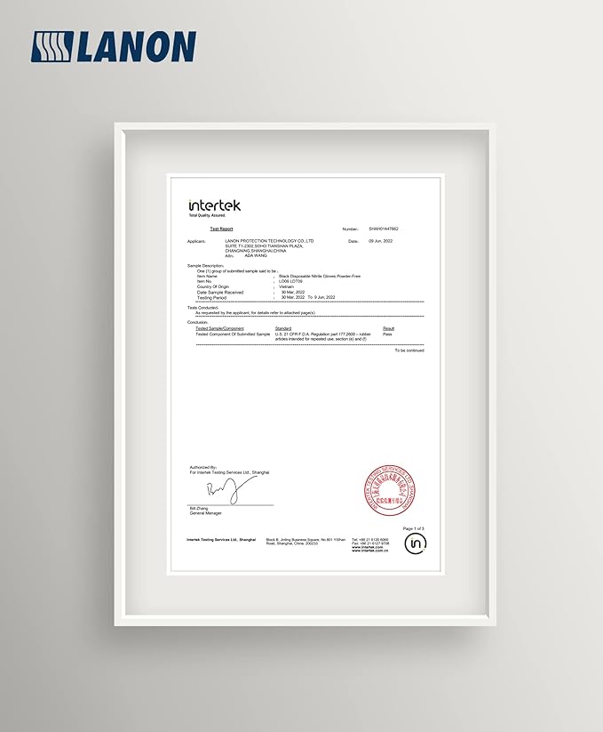 - Next-Level Performance - Our disposable gloves for hand protection are tested to meet the F.D.A. 21 C.F.R, suitable for contact with all food types, EU Certificated, CAT III, with Standards EN ISO 374-1:2016+A1:2018 / Type B, EN 374-4:2013, EN ISO 374-5:2016, and have an AQL of 4.0.