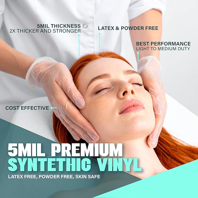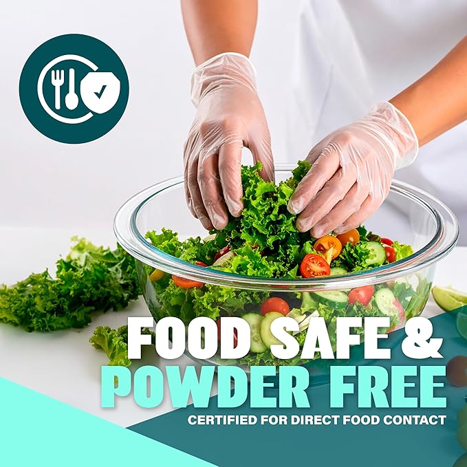 Medical Clear Vinyl Gloves Powder Free & Latex Free, Disposable, Food Safe