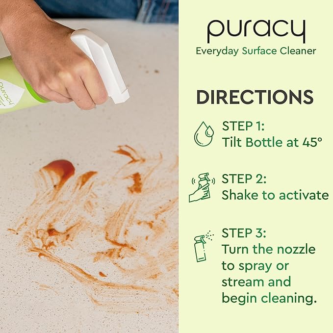 Puracy Multi-Surface Cleaner Spray - Plant-Powered Everyday Surface Cleaner - Natural All Purpose Cleaning Solution As Seen on TikTok (Green Tea and Lime Spray Bottle, 16 fl oz)