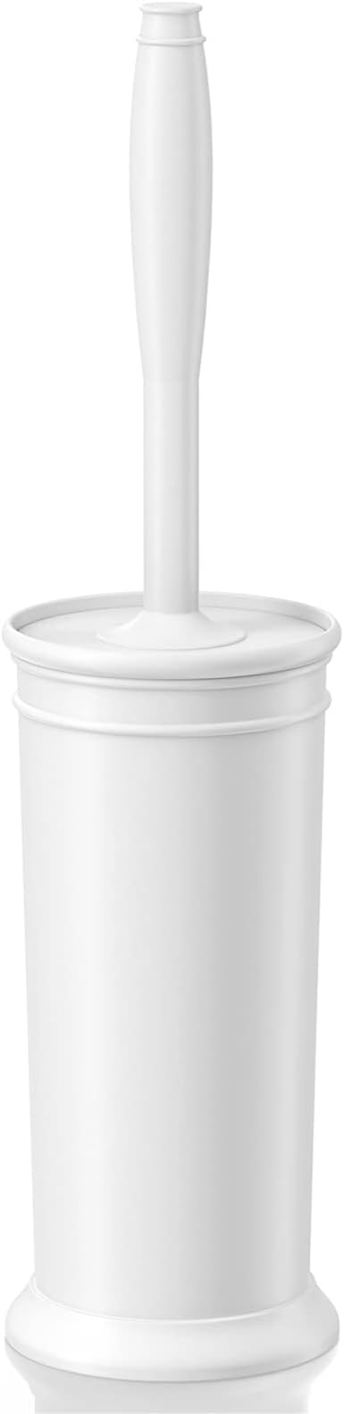 UPTRONIC Toilet Brush, Toilet Bowl Brush with Extra Long Handle Durable Bristles Toilet Scrubber and Covered Holder for Toilet Brush Set for Bathroom Cleaning (White, 1 Set)