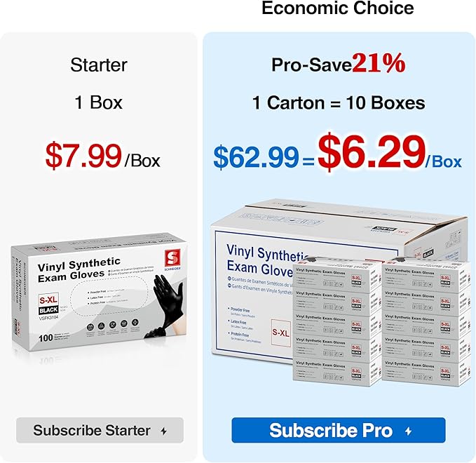 Schneider Vinyl Synthetic Exam Gloves, 4 Mil, Latex Free Disposable Gloves for Medical, Cooking, Cleaning, and Food Prep