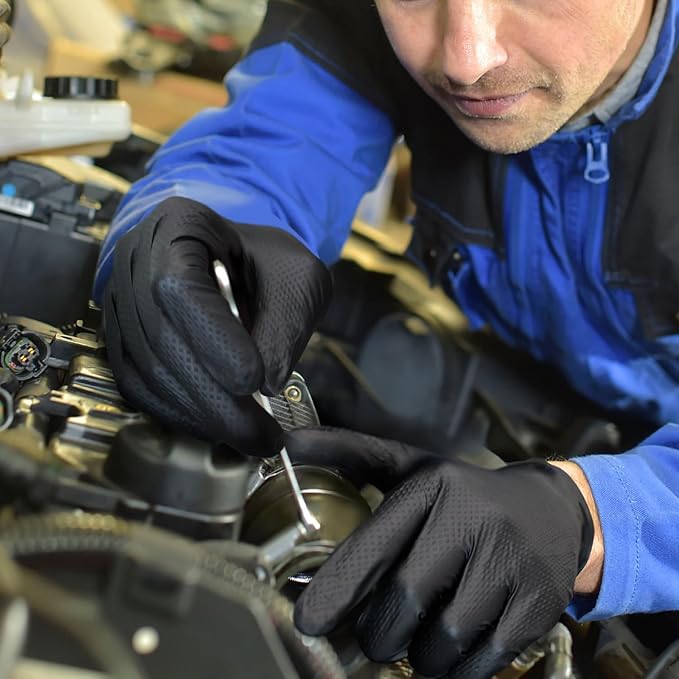 - MASK DIRT BY THE BLACK COLOR: The black design of nitrile gloves features dirt hidden, which improves the service quality for auto repair, car maintenance, painting and household plumbing.