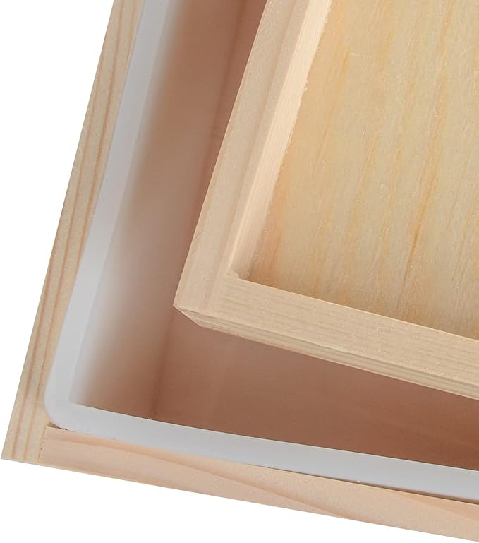 - Wood Soap box’s size:13.3"(L) x 13.3" (W) x 4.5" (H). Silicone soap mold’s size:12.2"(L) x 12.2"(W) x 3.35"(H). The capacity is 8 L/282 OZ, can produce larger quantities of soap in a shorter time