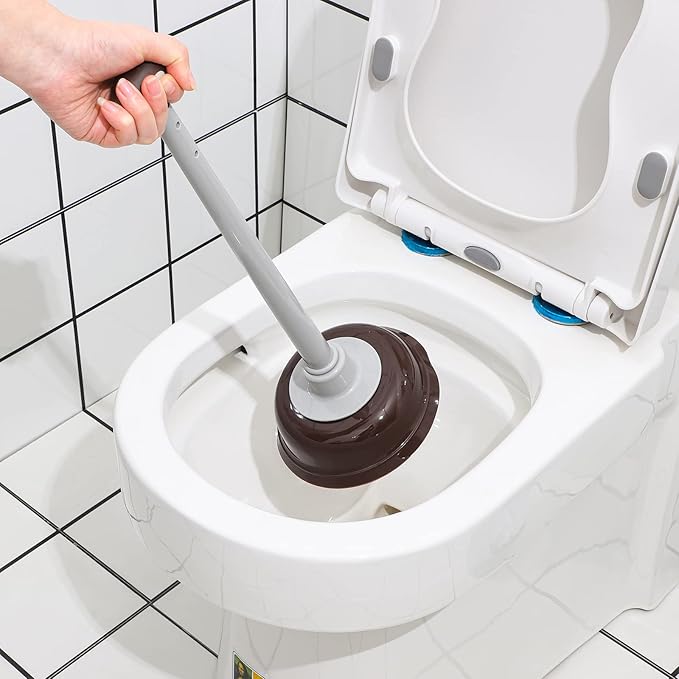 - HEAVY DUTY TOILET PLUNGER: Built with commercial grade rubber suction cup which provides maximum plunging power for clearing tough clogs of toilet bowl, shower drains and sinks.and the 15.5" handle with ergonomic grip provides additional leverage for highly effective results when unclogging the toilet.