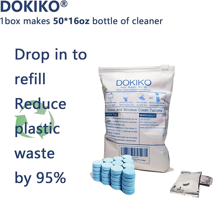 - 【Cost-Effective & Space-Saving】 Save money and storage space! 1 tablet makes 16 fl oz of cleaner spray, and 1 pack provides a year’s supply. Also works as windshield washer fluid (1 tablet = 1 gallon).