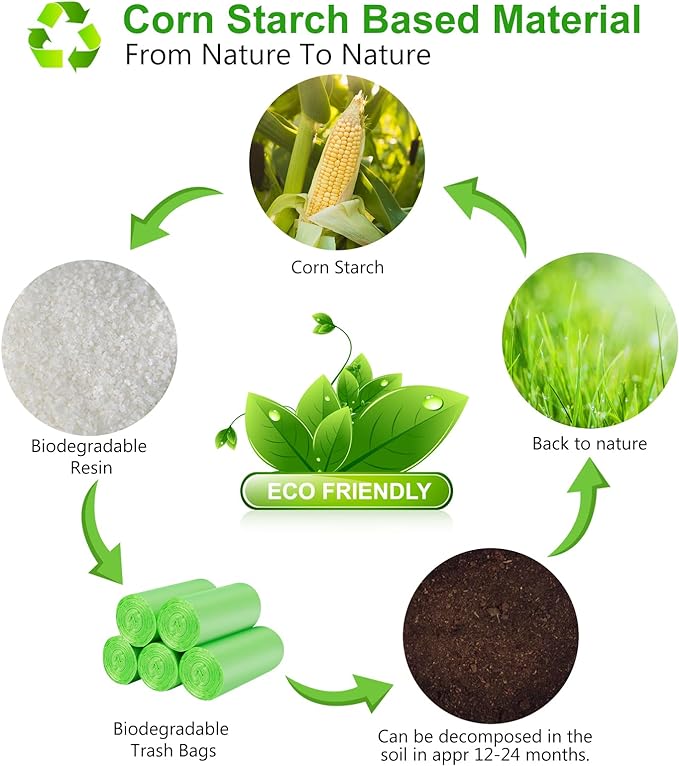 - CORN STARCH BASED MATERIAL Made of plant extracts (cornstarch) to be broken down more easily, Inwaysin kitchen trash bags 4 gallon are unscented and with preventing against the unpleasant trash ordour