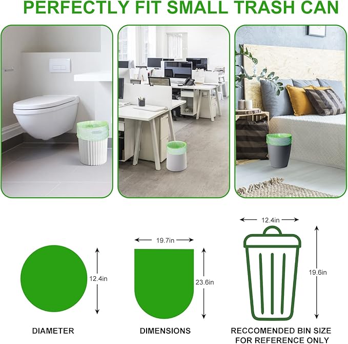 Small Trash Bags 4-6 Gallon, Inwaysin 200 Count Biodegradable Trash Bags 4 Gallon, Extra Strong Small Garbage Bags Unscented, Size Expanded, Green, for Bathroom Bedroom Office Kitchen Trash Can
