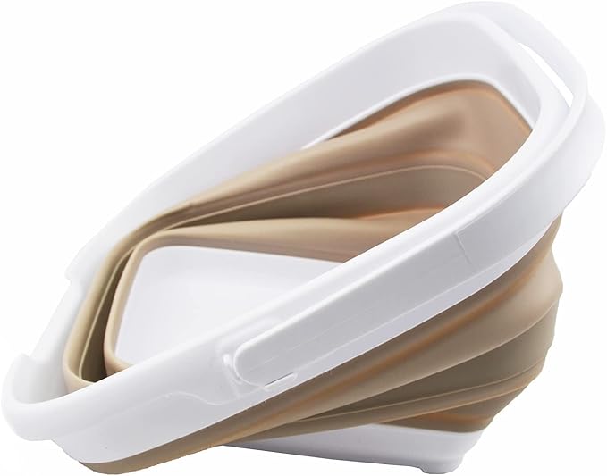 - Space saving with Expanded size: 13.1 x 12 x 8.6 (h) inches and its height just 2.1 inches after folds. Save over 70% space when storage. Capacity: 10L / 2.6 gallon