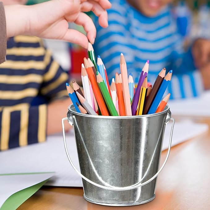 - 【MULTI-FUNCTION】These tin buckets are great for Halloween trick or treat, baby shower, Christmas goodies,party favors, Easter gifts,garden succulents , flower pots, or for the beach toys .It's also used as an indoor-multipurpose holder such as tabletop storage barrels, pen holder, makeup brush holder. It organizes all bits and pieces around your house.