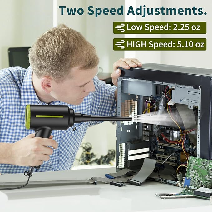 - 💨[Powerful Duster] Plug and play. Just buckle the trigger. You can choose two speeds as needed. The maximum speed of the air duster can reach 5.1oz.