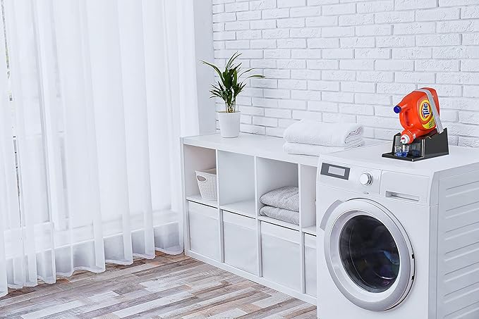 - [All-in-One Laundry Detergent Cup Holder Stand]: This smart laundry soap dispenser for liquid detergent is designed for total convenience. This laundry organizer for detergent gives you a place for your bottle and cup in one tidy space. It even works as a fabric softener dispenser, making laundry day smoother than ever.