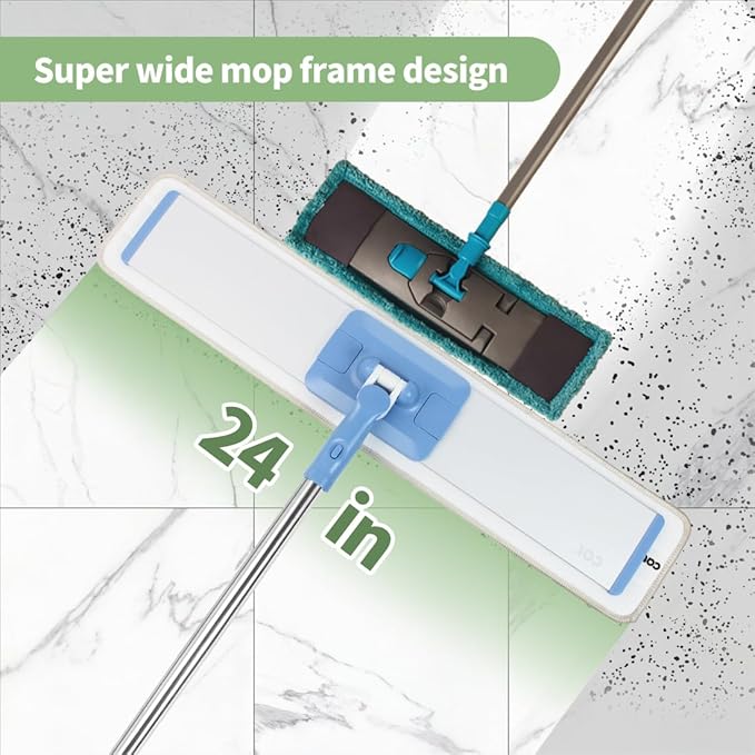 - 【Efficient Cleaning】: The 360° microfiber mop has a 24" wide aluminum frame with easy-clip design compatible with 24-26" pads The 57" handle ensures comfortable cleaning while the 0.5" low-profile frame reaches under furnitureC