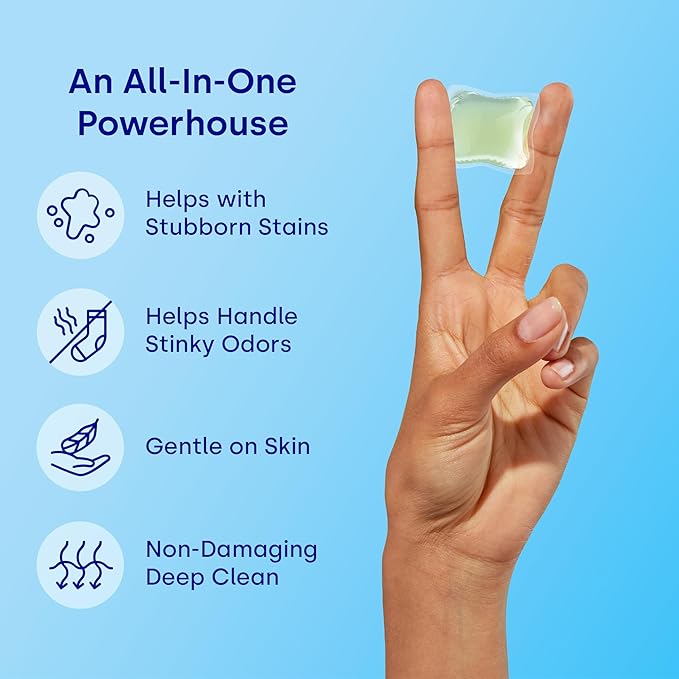 - TARGETED ODOR ELIMINATION & POWERFUL STAIN REMOVAL: Our detergent pods are expertly crafted with five specialized enzymes to combat stubborn stains and innovative malodor technology to eliminate unpleasant odors. Ideal for everyday fabrics such as cotton, athletic wear, and polyester. Elevate your laundry experience with our nature-inspired fragrances – made to last for a delicate scent that lingers.