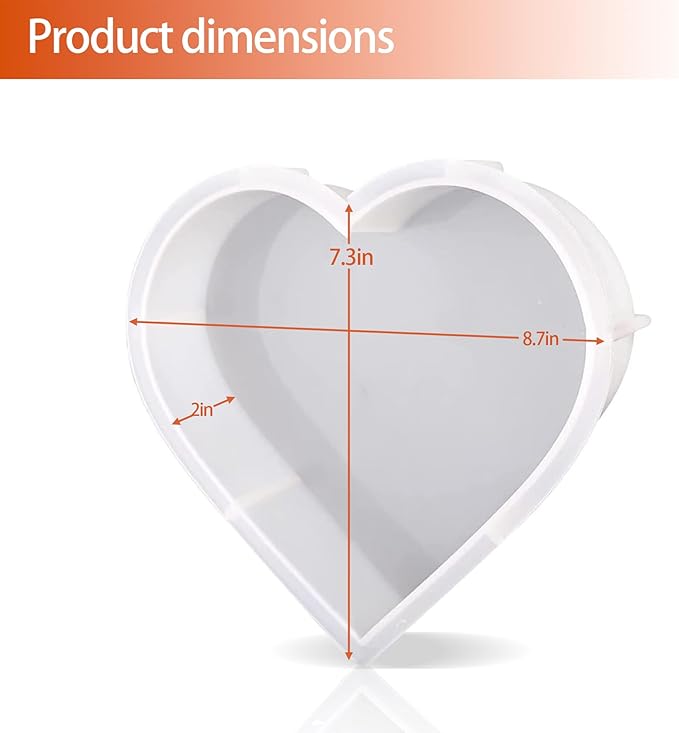 - 【Large Resin Molds Silicone】- Package includes 1 x Large Heart Silicone Molds; the molds size is about 7.3"Lx8.7"Wx2.1"H; the finished resin craft size is about 6.3“Lx7.7"Wx2"H, total need approx 46.8oz epoxy resin to fill the molds to full