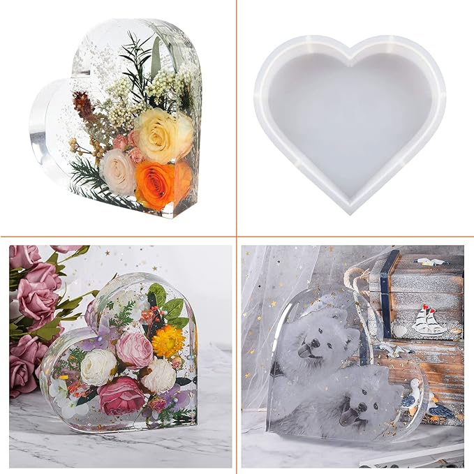 Large Silicone Molds for Resin, Resin Heart Molds 7.3'' x 8.7“x 2'', Deep Epoxy Resin Molds for Flowers Preservation,Resin Art, Resin Casting DIY Mold for Wedding,Valentine, Anniversary