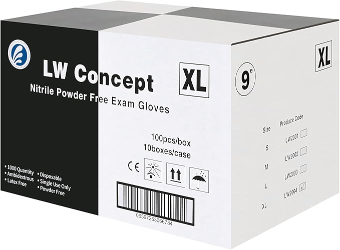 LW Concept - Black Nitrile Examination Gloves - Latex & Powder-Free, Disposable, Strong, Healthcare, Food Handling (Medium)
