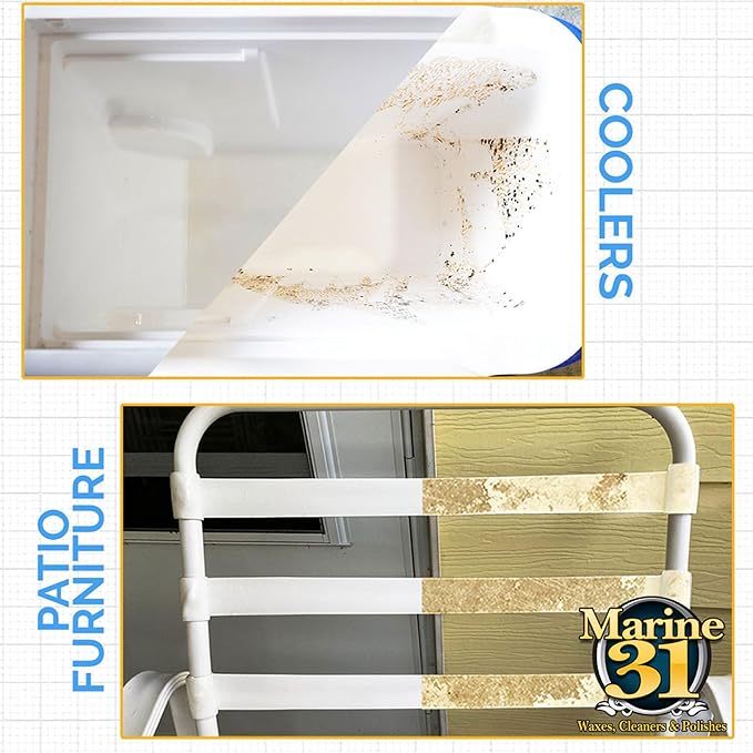 - MULTIPLE USES: Safe for Boats, Vinyl, Tile, Grout, Patio, Coolers, and just about anywhere else that may accumulate stains. Marine 31 Mildew Stain Remover works like no other!