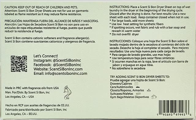 - PERFECTLY PAIRED – Scent Si Bon Dryer Sheets pair perfectly with Scent Si Bon Laundry Detergent Sheets to enhance your clothing.