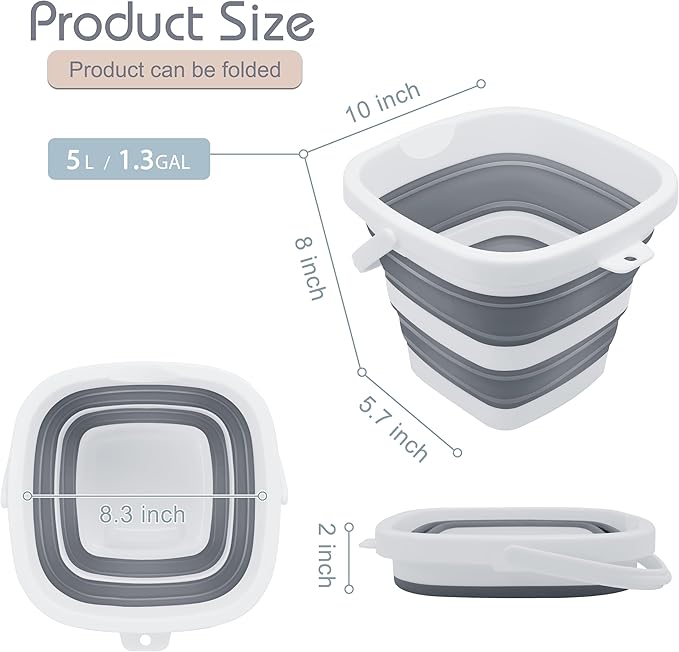 - 【Multi-Purpose Use】Perfect for house cleaning, car washing, beach trips, and camping. Use as an ice bucket, mop pail, or storage for small items. The lightweight design makes it ideal for travel, hiking, and fishing.