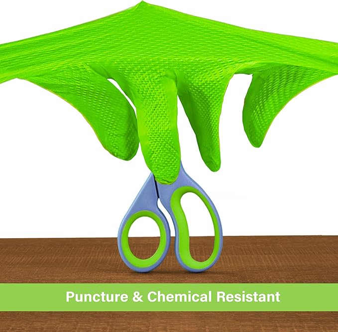 - GREEN NITRILE GLOVES: 6 mil thick they're perfect industrial cleaning supplies. They offer the durability of heavy-duty latex gloves without allergens, great for tough jobs needing strong protection.