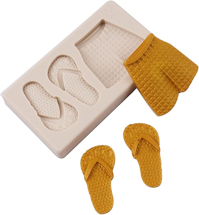 3 Pcs Hawaiian Coconut Tree Fondant Molds, Seaside Beach Sun Silicone Molds, Slipper Surf Shorts Clay Mold for Cake Decorating, Candy Chocolate Marzipan Resin Crafts, Summer Party, Halloween