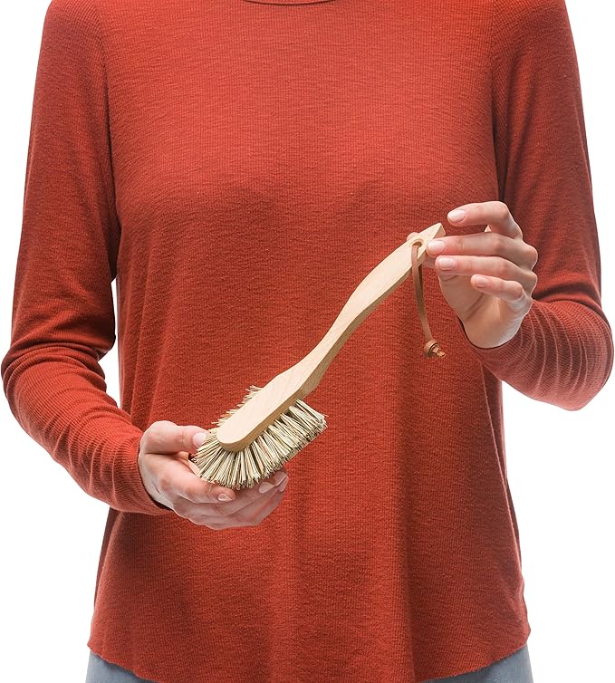 Redecker Extra Long Curved Dish Brush, Extra Strong Union Fiber Bristles, Oiled Beechwood Handle, 10-1/2 Inches, Made in Germany