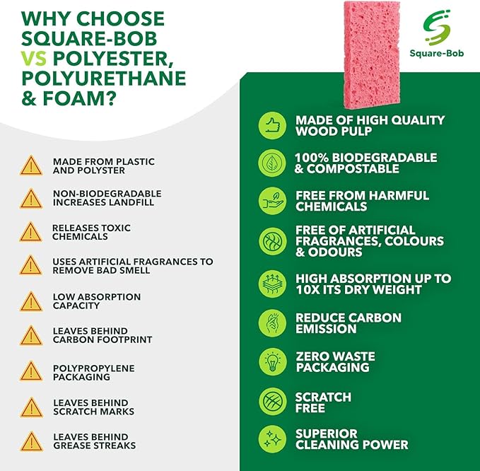 - Easy to Clean & Sanitize: No need to struggle with bleach and detergents, run them through a dishwasher to keep these household cleaning sponges clean and odor free; being plant-based, they do not have any harmful effect on your health or the planet