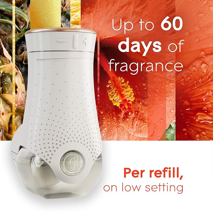 - Each air freshener oil refill offers up to 60 days of continuous diffused clean linen fragrance when used with the new, completely re-designed adjustable fragrance warmer on the low setting