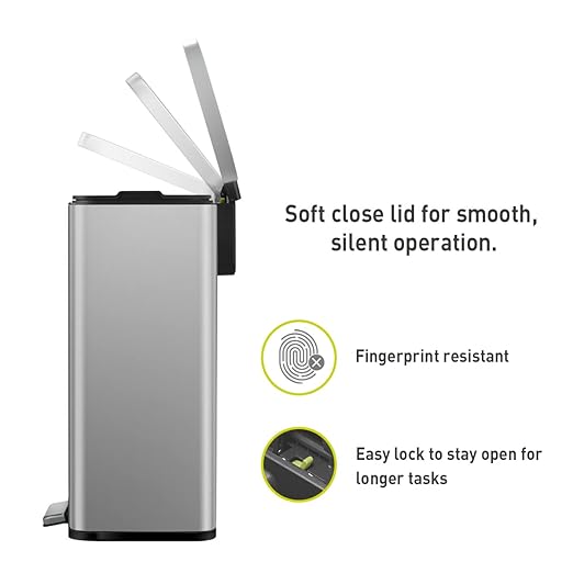 - Whisper-quiet Closing - The rugged step pedal mechanism is built to withstand years of daily use, and the bi-force damper soft open and close lid prevents slamming and banging.