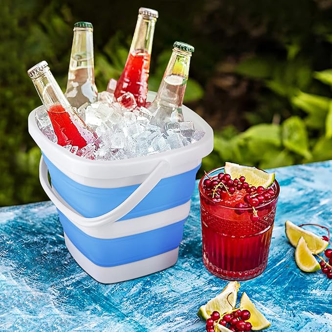- Versatility:This foldable bucket is perfect for indoor or outdoor use. It is a small beach bucket when playing sand and also be used for cleaning bucket for household Kitchen,car washing.Also a wash basin for not only dishes but also hands,even ice bucket for drinks,beers storage container for for camping,hiking,boating,fishing.