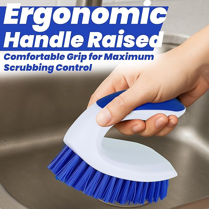 - Ergonomic Raised Handle: The raised, non-slip handle provides a secure grip and keeps your hand away from dirty surfaces; Scrub longer with less hand fatigue