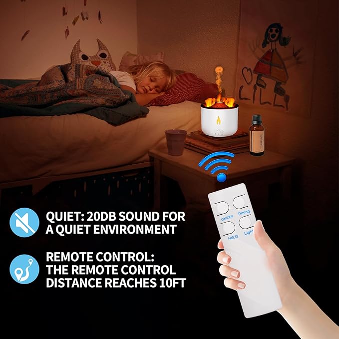 - 【Volcano and flame modes 】Aroma diffuser has 2 modes - flame and volcano. Volcano diffuser spray mode like erupting from a volcano, flame diffuser spray mode burning in the air like fog. bring you different experiences, Allow you to experience the scene of flames erupting even at home/bedroom/largeroom