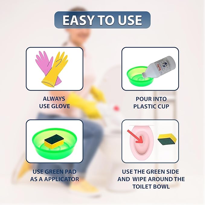- SAFETY RECOMMENDATIONS: For a safe and effective cleaning experience, please follow the direction on the label on the bottle and adhere to the following guidelines. When using hard water stain toilet bowl cleaner, it is crucial to protect your skin by wearing gloves. In the event of skin contact, promptly wash the affected area with soap and water. Your safety is our priority, and we strive to provide you with a superior cleaning experience while keeping your well-being in mind.