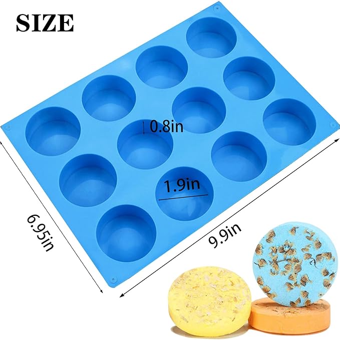 Round Soap Molds,2PCS Silicone Soap Molds for Soap Making 12Cavity Cylinder Silicone Mold for Lotion Bars,Bath Bombs,Shower Steamer,Shower Tablets, Beeswax,Candles